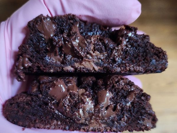 Moist and dark chocolate soft cookie filled with milk and semi sweet chocolate chunks.